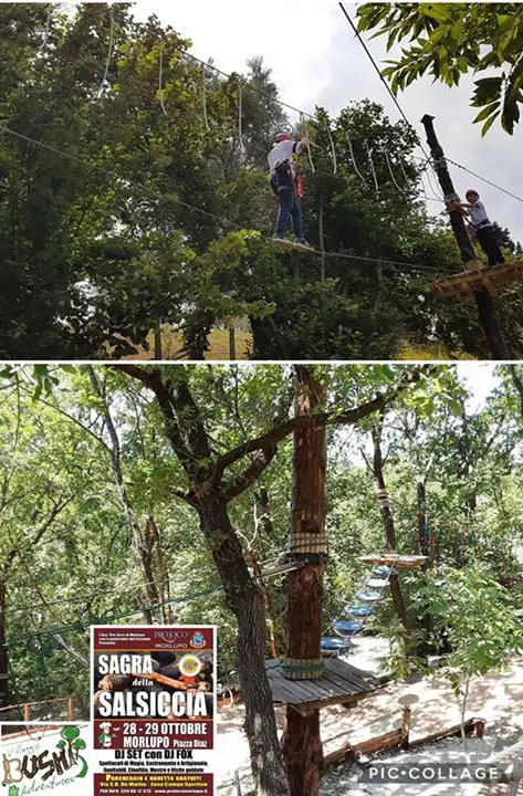 Ti accompagneremo nei vari percorsi che vorrai affrontare, dai percorsi Arancione, Celeste, Verde, Blu e Rossa in un crescendo di difficoltà e di itinerari, per arrivare alla teleferica Corsaro Nero, la più alta del parco avventura che vi porta sopra le chiome verdi degli alberi fino ad un’altezza di ben 80 metri !!